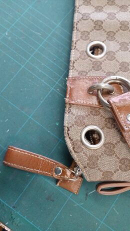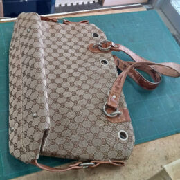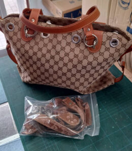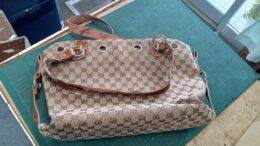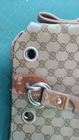 今回お預かりしたのは、息子さんからプレゼントされた大切なブランドバッグです。長く使われてきたことで全体的に傷みが進み、修理を受け付けてくれるお店がなかなか見つからなかったとのことで、ご紹介を通じて当店へご依頼いただきました。