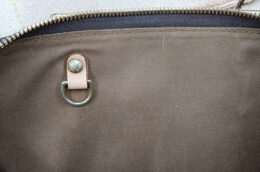 底面には鋲金具を取り付け、ファスナーは新しいものに交換し、スラスと引き手は元の物に戻しました✦