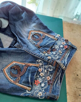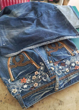 今回は、長年履き慣れたデニムパンツ(2本)のリメイク事例をご紹介します。