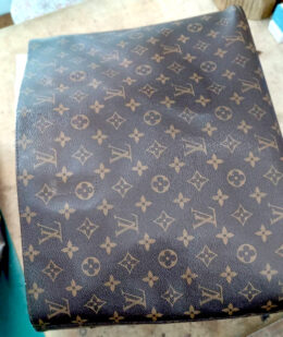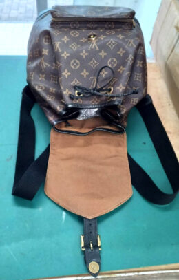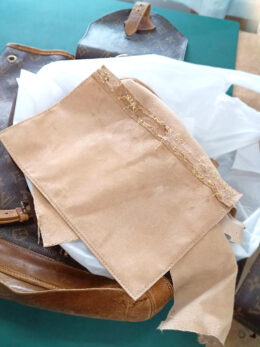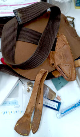 モンスリは「ヌメ革が汚れるので黒の革に変えたい」とのご希望。さらに、「フタのベルトが使いづらいので、