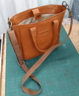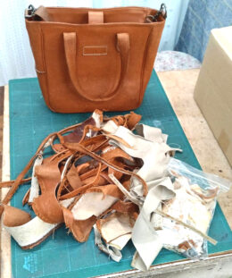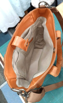 「もう少し小さく、使いやすいサイズにしてほしい」とのご希望をいただき、元のバッグの革を活かしながら、