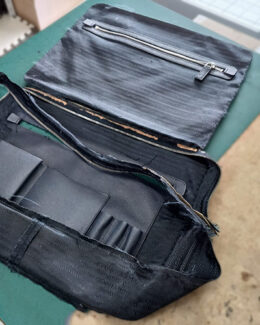 さて今回は、使わなくなった革のビジネスバッグを、携帯などの小物を入れて使えようにしたい、